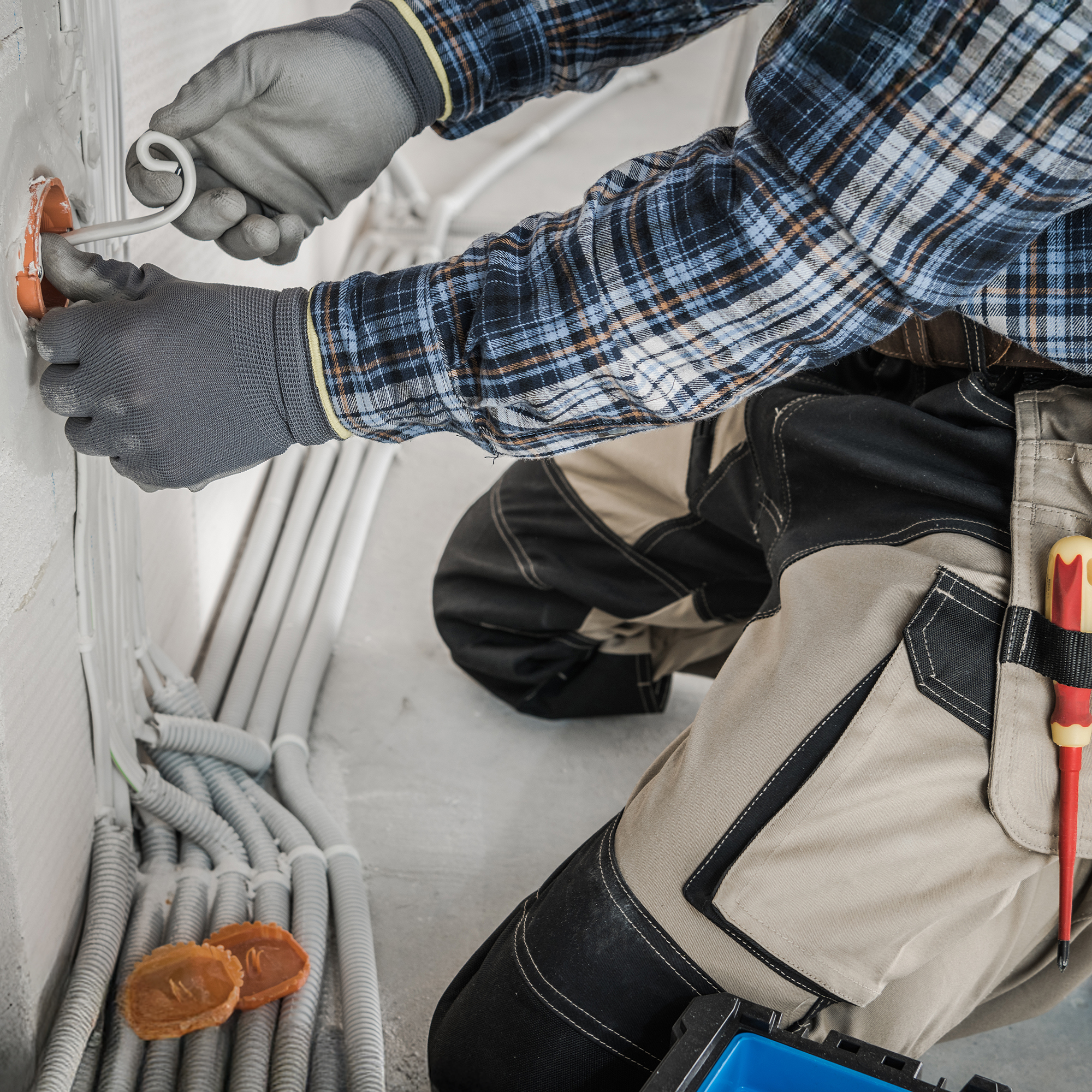 Rozprowadzenie instalacji elektrycznej to jedna z pierwszych czynności wykonywanych wewnątrz budynku. W ścianach, stropach i podłogach układamy przewody zasilające, oświetleniowe oraz instalacje niskoprądowe, takie jak internet, telewizja czy system alarmowy.
